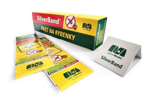 Jednostranne lepiaci pás, ktorý sa skladá do tvaru trojuholníka. Lapač zaisťuje účinný odchyt rybeniek (Lepisma saccharina).