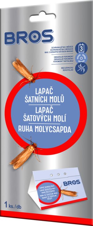 Pasca bez zápachu pre sledovanie prítomnosti molí šatníkov v skriniach a zásuvkách. Lepidlo s feromónom prirodzene láka a účinne chytá dospelých samcov móla šatníka, a to po dobu až 3 mesiacov. Neobsahuje chemické insekticídy.