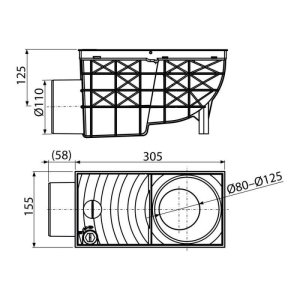 • obsahuje tesniace krúžky na pripojenie dažďových zvodov rôznych priemerov (80, 90, 110, 125 mm), veko odkvapového zvodu (možno nahradiť mriežkou