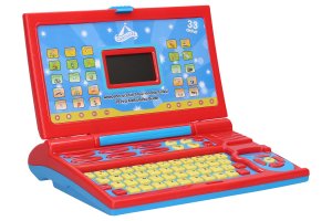 Laptop detský - hovorí po česky. Rozmery 24x19,5 cm. Svetelné a zvukové efekty. 3xAA batérie súčasťou. Súčasťou drôtová myš. Tlačidlo ON/OFF - aktivácia displeja. Výučba abecedy, slov, čísel, melódie, hry, hodiny, opakovacie funkcie, nastavenie hlasitosti, podsvietenie displeja.