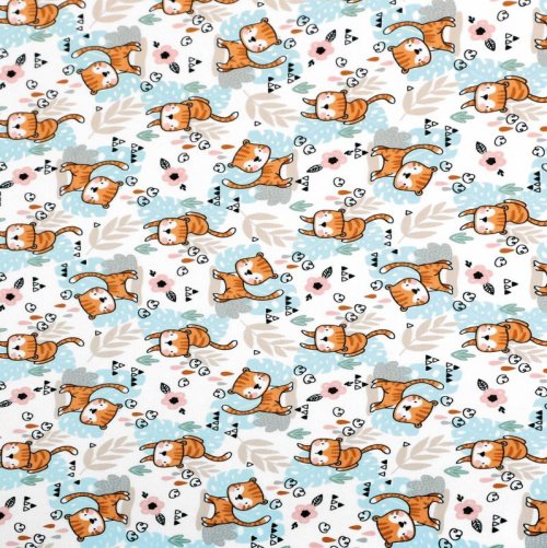Látka - elastický úplet s potlačou - šírka 175 cm - Mačka