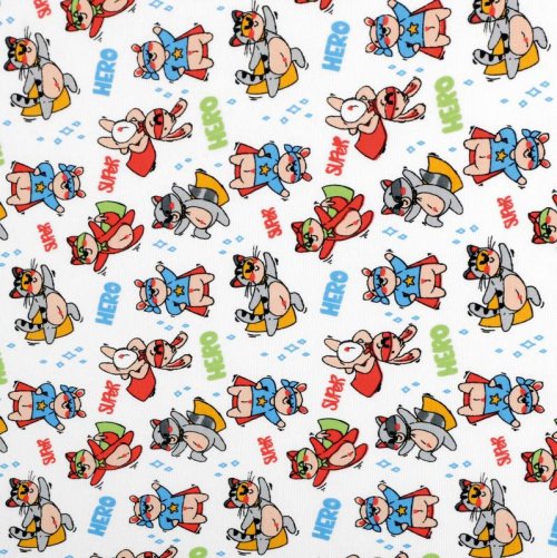 Látka - metráž zloženie 95% Bavlna, 5% Elastan 165g/m2 šírka 175cm pranie na 40 ° C sušiť v sušičke na nízku teplotu žehliť do 110 ° C detské motívy pružný materiál predaj po 1m