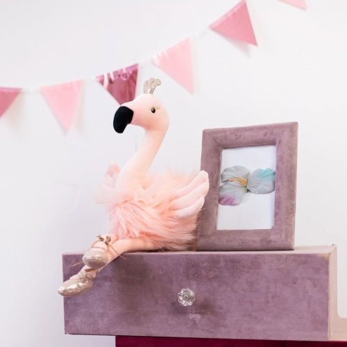 Krásna, plyšová balerína v podobe plameniaka, ktorá sa stane skvelým kamarátom na hranie či zaspávanie Vášho dieťaťa.