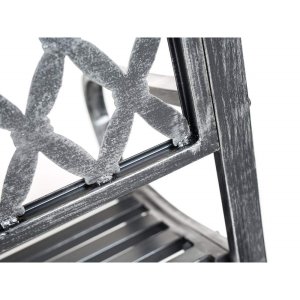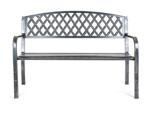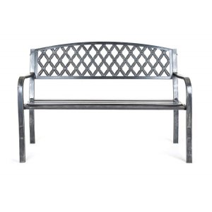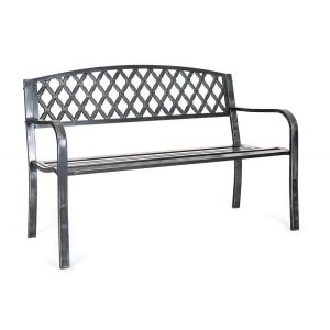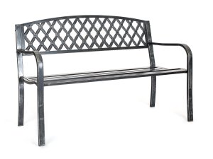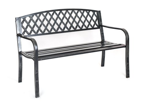 Záhradná lavička LUSSO je vyrobená z ocele s liatinovým operadlom v čiernej farbe. Rozmery: 127 x 60 x 85 cm. Nosnosť lavičky: 200 kg.