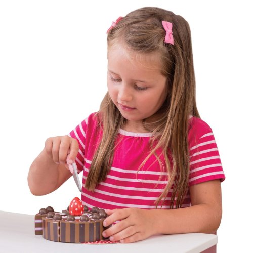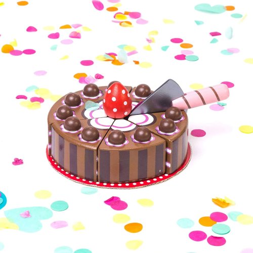 Naservírujte hosťom lahodnú čokoládovú tortu. Ručne maľovaná torta v odtieňoch hnedej s kvetinovými vzormi, nechýba ani jahoda ako ozdoba. Šesť drevených kúskov je spojených suchým zipsom, možno ich tak naozaj jednoducho „odrezať“. Udržateľná hračka vám vydrží naozaj dlho, deti podporia v rozvoji sociálnych zručností, zručnosti a jemnej motoriky, je perfektná pre predstavivú hru na role. Hračky s účelomVšetky hračky firmy Le Toy Van sú vyrobené s cieľom - aby dlho vydržali. Dizajnované s láskou skúsenými remeselníkmi za použitia etických praktík a udržateľných materiálov, ktoré sú láskavejšie k našej planéte. Hlavné vlastnosti: vyrobené eticky z udržateľného dreva testované podľa najprísnejších štandardov maľované netoxickými farbami na báze vody inšpiruje k predstavivej hre rozvíja kognitívne zručnosti Honeybake kolekcie: Hračky v tejto kolekcii sú vhodné na objavovanie, pomôžu deťom s rozvojom predstavivosti, sociálnych a verbálnych zručností a kogni. Tradičný dizajn s modernými detailmi deti určite bude baviť. Honeybake je kolekcia Le Toy Van, ktorá vyhrala najviac ocenení, a to za dizajn, kvalitu, bezpečnosť a tiež za vzdelávaciu a hernú hodnotu.
