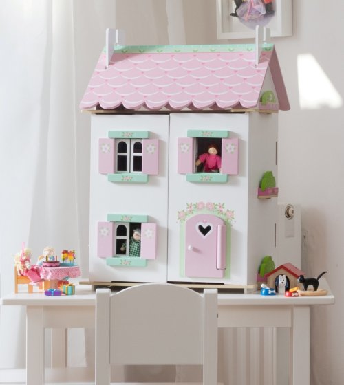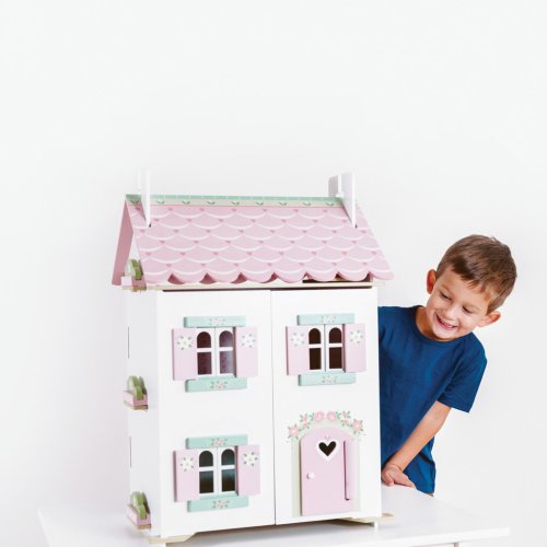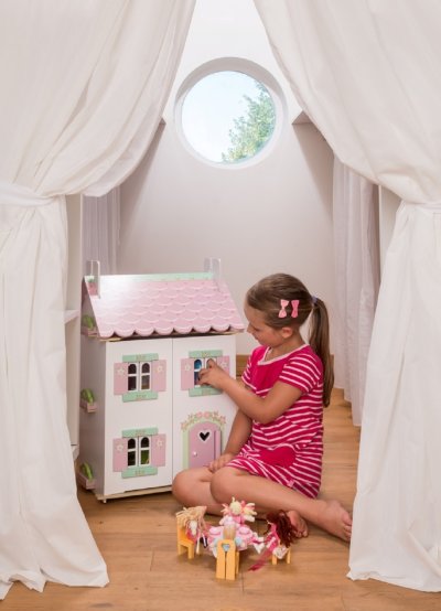 Trojposchodový ručne domalovávaný domček pre bábiky v jemnej pastelovo ružovej a bielej farbe so žiarivou strechou posypanú trblietkami s 37 ks nábytku je vyzdobený krásnymi srdiečkami a kvetinovými motívmi s plne otváracími a zatváracími oknami a okenicami pre realistickú hru. Predná časť domčeka sa otvára a odhaľuje nádherný priestor na dvoch poschodiach, pričom každá izba je zdobená peknými farebnými vzormi. Zdvihnite odnímateľnú časť strechy a objavíte podkrovie, ideálne ako herňa alebo spálňa. Pri hraní deti precvičujú komunikačné zručnosti, prehlbujú sociálne intrakcie a využívajú kreativitu. Domček je určený pre bábiky do veľkosti 15 cm . Tento tradičný domček pre bábiky je nadčasový a naozaj obľúbený. Domčeky Le Toy Van pre bábiky sú vytvárané s láskou pre celoživotnú kúzelnú hru. Používajú udržateľné postupy, etiku a vyrábajú krásne drevené hračky, ktoré dnes aj pre ďalšie generácie inšpirujú a rozvíjajú predstavivosť. Hlavné vlastnosti: Pomáha s rozvojom koordinácie pohybov, sociálnych zručností a rozvoju reči Dvojposchodový domček pre bábiky vybavený 37 ks nábytku Podporuje v dlhodobej predstavivej hre Zlepšuje koordináciu v zábavnom prostredí Vyrobené eticky z udržateľného dreva Dekorované netoxickými farbami, testované podľa najprísnejšie Award 2015 Daisylane kolekcia: Prestížna kolekcia domčekov pre bábiky a doplnkov firmy Le Toy Van. Pred viac ako 25 rokmi zakladateľ Georges navrhol svoj úplne prvý domček pre bábiky, stavebný kameň tejto firmy. Vyrobené eticky z udržateľných materiálov, drevené domčeky pre bábiky Daisylane sú jedinečné a nebudú detskú predstavivosť držať späť. Rodinné dedičstvo, skutočná investícia do hrania.