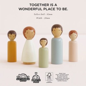 Dubois Wooden Family Dolls, to je malá drevená rodinka na Vaše nekonečné hranie. Prineste detským hrám kúzlo prirodzenosti a jednoduchej elegancie s týmto ručne vyrábaným setom. Súprava piatich drevených bábik je vyrobená z jedného kusu FSC® certifikovaného dreva, každý kus je originálny a má jemnú, prírodnú štruktúru a mäkké, neutrálne farebné ladenie. Panenky sú navrhnuté minimalisticky, bez plastov, s hladkým povrchom a netoxickým vodou riediteľným lakom, sú tak ideálne pre malé ruky a bezpečnú detskú hru. Vďaka svojmu jednoduchému tvaru a prirodzenému vzhľadu podporujú rozvoj fantázie a kreatívneho rozprávania. Tento set je perfektným doplnkom k domčekom pre bábiky, mini-svetom, hracím sadám alebo ako samostatná sada pre imaginárne hry. Je to ekologická, štýlová a trvanlivá hračka, ktorá podporuje kreatívnu hru, jemnú motoriku a sociálnu interakciu. Hlavné vlastnosti: 5 kusov drevených bábik skutočná rodinka, ideálna pre domček, malé svety alebo voľnú hruFSC® drevo a ekologické farby minimalistický a neutrálny design podpora kreativity a imaginácie, deti môžu bábikám priraďovať vlastné príbehy a rolepodpora jemnej motoriky, kreativity a sociálne hry do väčšieho herného sveta Značka a certifikát FSC® (Forest Stewardship Council) zaručuje, že drevo, z ktorého bol produkt vyrobený, nebolo vyťažené nelegálne a pochádza z lesov obhospodarovaných šetrným či prírode blízkym spôsobom, v ktorom sú dodržiavané prísne environmentálne a sociálne požiadavky. Značka FSC® na výrobku znamená, že svojim nákupom pomáhate chrániť lesy a podporujete šetrné, zodpovedné či prírode blízke hospodárenie, vďaka ktorému sú naše lesy stabilnejšie, zdravšie, majú prirodzenú druhovú skladbu a lepšie odolávajú negatívnym následkom klimatických zmien.
