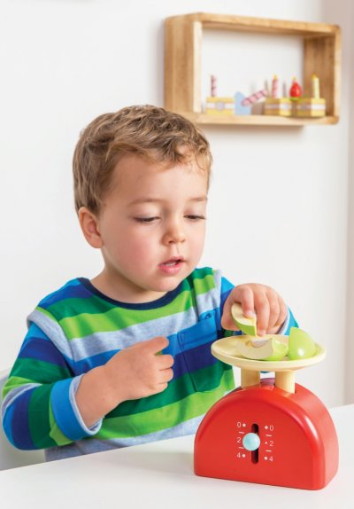 Perfektný pre mladých pekárov a šéfkuchárky! Drevená váha bude skvelým doplnkom detských kuchyniek a predajných stánkov. Pestrofarebná hračka deti inšpiruje k predstavivej hre. Je dekorovaná netoxickými farbami na báze vody. Múdra pohyblivá páčka umožňuje realistickú hru, váženie s ňou bude naozaj jednoduché. Nechýbajú ani dve jablká, ktoré sú rozpolené. Uprostred majú suchý zips, dajú sa tak jednoducho spojiť aj rozpojiť. Hračky s účelomVšetky hračky firmy Le Toy Van sú vyrobené s cieľom - aby dlho vydržali. Dizajnované s láskou skúsenými remeselníkmi za použitia etických praktík a udržateľných materiálov, ktoré sú láskavejšie k našej planéte. Hlavné vlastnosti: vyrobené eticky z udržateľného dreva testované podľa najprísnejších štandardov maľované netoxickými farbami na báze vody inšpiruje k predstavivej hre rozvíja kognitívne zručnosti Honeybake kolekcie: Hračky v tejto kolekcii sú vhodné na objavovanie, pomôžu deťom s rozvojom predstavivosti, sociálnych a verbálnych zručností a kogni. Tradičný dizajn s modernými detailmi deti určite bude baviť. Honeybake je kolekcia Le Toy Van, ktorá vyhrala najviac ocenení, a to za dizajn, kvalitu, bezpečnosť a tiež za vzdelávaciu a hernú hodnotu.