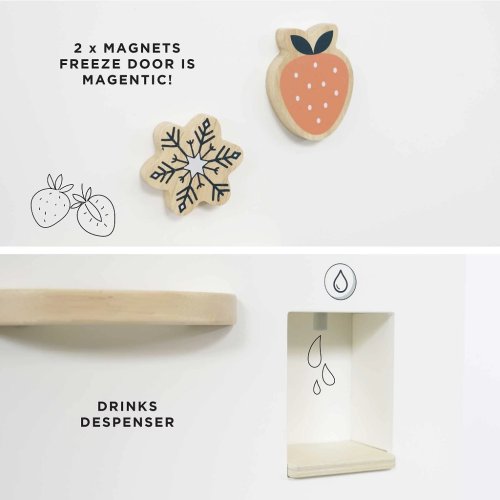 Vylepšite svoju kuchynku touto úžasnou voľne stojacou chladničkou s mrazničkou! Odolná hračka s lákavým retro designom je plná interaktívnych funkcií pre väčšiu zábavu a viac nápadité hranie rolí. Objavte vstavaný dávkovač vody, ovládanie teploty či priehradky na ovocie a zeleninu. Kompletný set prichádza aj s radom príslušenstva vrátane 2 nanukov, stojana, tácok na vajcia a ľad a fľaše na mlieko či smoothie. Dvere chladničky sú magnetické a navyše sú tu dva praktické, ozdobné magnety. Chladnička je kompatibilná s veľkou kuchyňou Le Toy Van (kód TV347). Súprava je vyrobená z dreva s certifikáciou FSC® (drevo z lesov obhospodarovaných udržateľným spôsobom) a zdobená farbami na vodnej báze bezpečnými pre deti . Hračky s účelomVšetky hračky firmy Le Toy Van sú vyrobené s cieľom - aby dlho vydržali. Dizajnované s láskou skúsenými remeselníkmi za použitia etických praktík a udržateľných materiálov, ktoré sú láskavejšie k našej planéte. Hlavné vlastnosti: vyrobené eticky z FSC udržateľného drevamaľované netoxickými farbami na báze vodytestované podľa najprísnejších štandardovobsahuje chladničku s mrazničkou, 2 magnety, tácka na ľadové kocky, tácka na vajcia, 2 nanuky, 2 fľaše, 2 fľaše, dávkovač vody Forest Stewardship Council) zaručuje, že drevo, z ktorého bol produkt vyrobený, nebolo vyťažené nelegálne a pochádza z lesov obhospodarovaných šetrným či prírode blízkym spôsobom, v ktorom sú dodržiavané prísne environmentálne a sociálne požiadavky. Značka FSC® na výrobku znamená, že svojim nákupom pomáhate chrániť lesy a podporujete šetrné, zodpovedné či prírode blízke hospodárenie, vďaka ktorému sú naše lesy stabilnejšie, zdravšie, majú prirodzenú druhovú skladbu a lepšie odolávajú negatívnym následkom klimatických zmien.