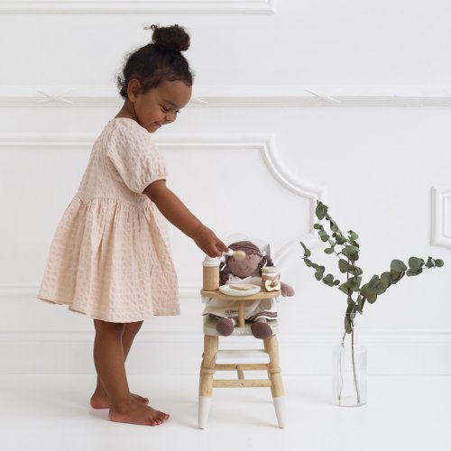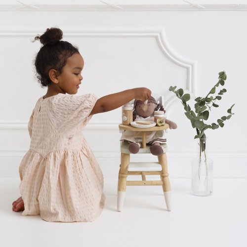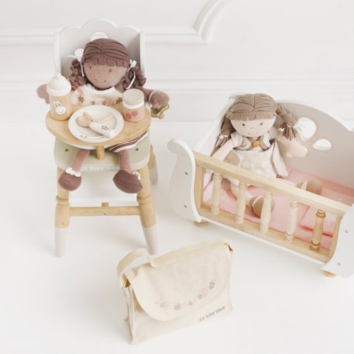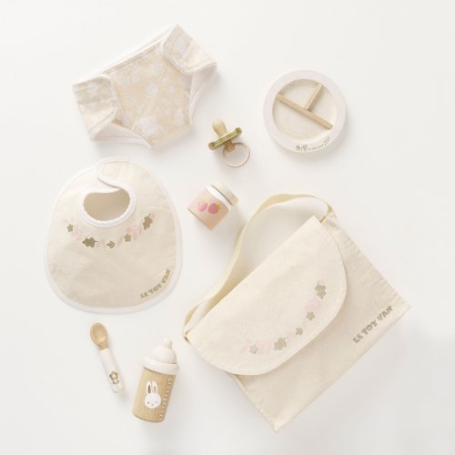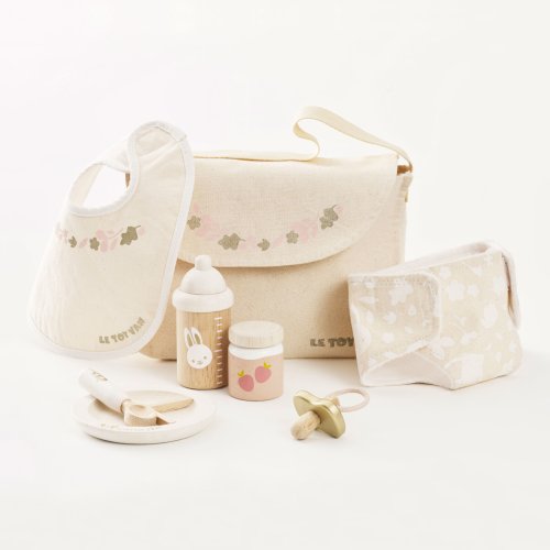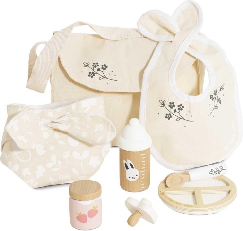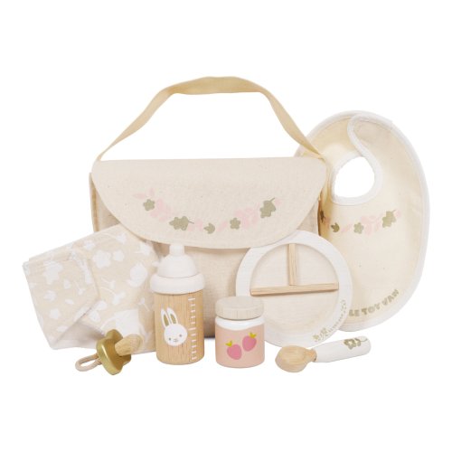 Predstavivá sada pre malých opatrovateľov a opatrovateľky. Táto krásna súprava obsahuje všetko, čo budú deti na starostlivosť o plyšové hračky a bábiky potrebovať. V balení roztomilá textilná prebaľovacia taška s popruhom, s ozdobnou ilustráciou listov. Vnútri nájdete všetky nevyhnutnosti, cumlík, podbradník, plienku, tanier, lyžicu, desiatu a fľaštičku. Vyrobené s láskou z kombinácie prírodnej bavlny a pevného dreva. Všetky doplnky sú vhodné pre plyšové hračky a bábiky vo veľkosti cca 30 až 35 cm. Hračky s účelomVšetky hračky firmy Le Toy Van sú vyrobené s cieľom - aby dlho vydržali. Dizajnované s láskou skúsenými remeselníkmi za použitia etických praktík a udržateľných materiálov, ktoré sú láskavejšie k našej planéte. Hlavné vlastnosti: pre plyšové hračky a bábiky vo veľkosti cca 30 až 35 cm vyrobené eticky z udržateľného dreva maľované netoxickými farbami na báze vody testované podľa najprísnejších štandardov podporuje predstavivosť, hranie na rolepomáha s rozvojom reči a sociálnych zručností. Ocenenie hračky: tejto kolekcii sú vhodné na objavovanie, pomôžu deťom s rozvojom predstavivosti, sociálnych a verbálnych zručností a kognitívnych funkcií. Tradičný dizajn s modernými detailmi deti určite bude baviť. Honeybake je kolekcia Le Toy Van, ktorá vyhrala najviac ocenení, a to za dizajn, kvalitu, bezpečnosť a tiež za vzdelávaciu a hernú hodnotu.