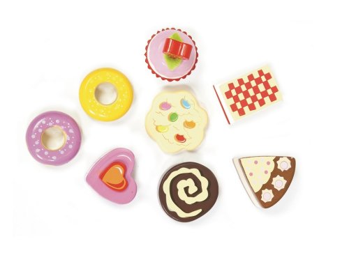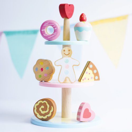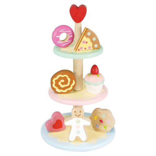 Dajte si do nosa s týmto trojposchodovým tanierom plným zákuskov. Medzi siedmimi zákuskami nájdete perníček, donut, roládu, cupcake, sušienku… Taniere majú rozdielne farby v pastelových odtieňoch. Všetky prvky hračky sú vyrobené z masívneho dreva, majú zaoblené hrany, ktoré sú bezpečné pre deti. Kvalitný a detailný výrobok deti inšpiruje ku kreatívnej hre. Zákusky môžu ponúknuť pri predstavivom popoludňajšom čaji s plyšákmi . Hračky s účelomVšetky hračky firmy Le Toy Van sú vyrobené s cieľom - aby dlho vydržali. Dizajnované s láskou skúsenými remeselníkmi za použitia etických praktík a udržateľných materiálov, ktoré sú láskavejšie k našej planéte. Hlavné vlastnosti: vyrobené eticky z udržateľného dreva testované podľa najprísnejších štandardov maľované netoxickými farbami na báze vody inšpiruje k predstavivej hre rozvíja kognitívne zručnosti Honeybake kolekcie: Hračky v tejto kolekcii sú vhodné na objavovanie, pomôžu deťom s rozvojom predstavivosti, sociálnych a verbálnych zručností a kogni. Tradičný dizajn s modernými detailmi deti určite bude baviť. Honeybake je kolekcia Le Toy Van, ktorá vyhrala najviac ocenení, a to za dizajn, kvalitu, bezpečnosť a tiež za vzdelávaciu a hernú hodnotu.