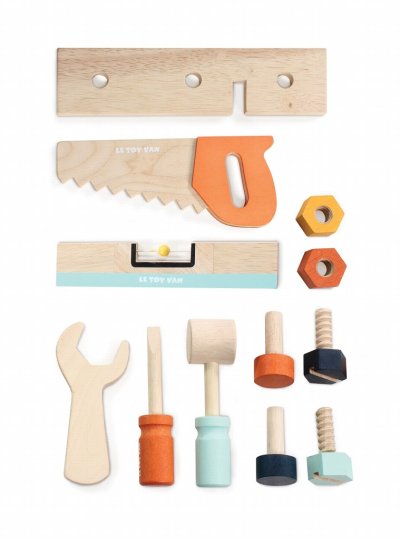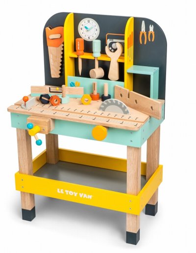 Pripravte sa na eko zábavu s náradím. Robustný ponk vás naozaj prekvapí, je to produkt, ktorý vyhral mnoho ocenení. Táto pestrofarebná hračka je vyrobená z odolného a udržateľného kaučukového dreva, je maľovaná netoxickými farbami na báze vody. V balení nájdete 12 zavalitých drevených doplnkov, ktoré majú veľkosť tak akurát pre detské ruky. Je to pílka, kladivo, skrutkovač, kľúč, vodováha, 2 skrutky, 2 skrutky, 2 klince a drevená doštička . Realistický ponk, ktorý si deti zamilujú, má vstavanú cirkulárku, mierku a tiež zverák. Na zadnej stene nájdete policu a háčiky pre pracovné náradie. V spodnej časti nájdete ďalší úložný priestor - pre všetky časti, ktoré potrebujú opraviť. Hračka je doplnená o pútavé ilustrácie, predstavivá hra deti doslova pohltí. Hračky s účelomVšetky hračky firmy Le Toy Van sú vyrobené s cieľom - aby dlho vydržali. Dizajnované s láskou skúsenými remeselníkmi za použitia etických praktík a udržateľných materiálov, ktoré sú láskavejšie k našej planéte. Hlavné vlastnosti: vyrobené eticky z udržateľného dreva testované podľa najprísnejších štandardov maľované netoxickými farbami na báze vody inšpiruje k predstavivej hre rozvíja kognitívne zručnosti Ocenenie hračky: Dasnet Toy Silver Award 2020 Autá & stavby: Stavebná a motorická kolekcia Le Toy Van, ktorá vyhrala. Presnejšie zatiaľ vyše 15 ocenení za predstavivé autá a stavebné hračky. Podporujú detskú fantáziu, sú ideálne na predstavivú hru, rozvíjajú kreativitu a hravo zlepšujú detskú koordináciu ruka -oko. Značka a certifikát FSC® (Forest Stewardship Council) zaručuje, že drevo, z ktorého bol produkt vyrobený, nebolo vyťažené nelegálne a pochádza z lesov obhospodarovaných šetrným či prírode blízkym spôsobom, v ktorom sú dodržiavané prísne environmentálne a sociálne požiadavky. Značka FSC® na výrobku znamená, že svojim nákupom pomáhate chrániť lesy a podporujete šetrné, zodpovedné či prírode blízke hospodárenie, vďaka ktorému sú naše lesy stabilnejšie, zdravšie, majú prirodzenú druhovú skladbu a lepšie odolávajú negatívnym následkom klimatických zmien.