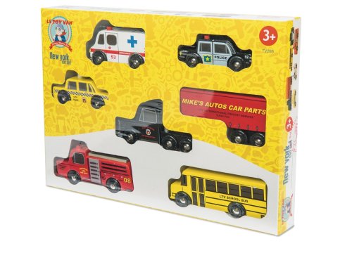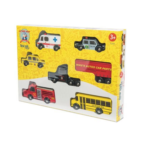 Týchto šesť drevených ikonických autíčok z USA deti určite inšpiruje k predstavivej hre. Vozidlá sú vyrobené z odolného a udržateľného kaučukového dreva, deti si pri hre môžu vytvárať vlastné príbehy, taktiež si potrénujú zručnosť a jemnú motoriku. V balení kĺbové nákladné auto s desiatimi kolesami, žltý školský autobus, policajné auto, žltý taxík, sanitka a hasičské auto. Kompatibilný s drevenými garážami a vláčikodráhrami Le Toy Van, taktiež s vláčikodráhami iných značiek . Hračky s účelomVšetky hračky firmy Le Toy Van sú vyrobené s cieľom - aby dlho vydržali. Dizajnované s láskou skúsenými remeselníkmi za použitia etických praktík a udržateľných materiálov, ktoré sú láskavejšie k našej planéte. Hlavné vlastnosti: vyrobené eticky z udržateľného dreva testované podľa najprísnejších štandardov maľované netoxickými farbami na báze vody inšpiruje k predstavivej hre rozvíja kognitívne zručnosti Autá & stavby: Stavebná a motorická kolekcia Le Toy Van, ktorá vyhrala mnoho ocenení. Presnejšie zatiaľ vyše 15 ocenení za predstavivé autá a stavebné hračky. Podporujú detskú fantáziu, sú ideálne na predstavivú hru, rozvíjajú kreativitu a hravo zlepšujú detskú koordináciu ruka-oko. Značka a certifikát FSC® (Forest Stewardship Council) zaručuje, že drevo, z ktorého bol produkt vyrobený, nebolo vyťažené nelegálne a pochádza z lesov obhospodarovaných šetrným či prírode blízkym spôsobom, v ktorom sú dodržiavané prísne environmentálne a sociálne požiadavky. Značka FSC® na výrobku znamená, že svojim nákupom pomáhate chrániť lesy a podporujete šetrné, zodpovedné či prírode blízke hospodárenie, vďaka ktorému sú naše lesy stabilnejšie, zdravšie, majú prirodzenú druhovú skladbu a lepšie odolávajú negatívnym následkom klimatických zmien.