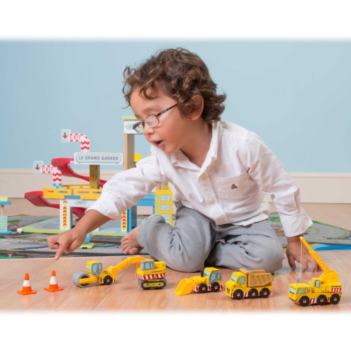 Súprava piatich drevených stavebných strojov s pohyblivými časťami je perfektná pre interaktívnu hru. Mladí stavitelia a staviteľky si užijú zábavu s domiešavačom, nákladiakom, nakladačom, bagrom, valcom a dvoma dopravnými kužeľmi. Veľkosťou kompatibilný s garážami a kobercami Le Toy Van. Vyrobené z udržateľného dreva, maľované netoxickými farbami na báze vody. Hračky s účelomVšetky hračky firmy Le Toy Van sú vyrobené s cieľom - aby dlho vydržali. Dizajnované s láskou skúsenými remeselníkmi za použitia etických praktík a udržateľných materiálov, ktoré sú láskavejšie k našej planéte. Hlavné vlastnosti: vyrobené eticky z udržateľného dreva testované podľa najprísnejších štandardov maľované netoxickými farbami na báze vody inšpiruje k predstavivej hre rozvíja kognitívne zručnosti Autá & stavby: Stavebná a motorická kolekcia Le Toy Van, ktorá vyhrala mnoho ocenení. Presnejšie zatiaľ vyše 15 ocenení za predstavivé autá a stavebné hračky. Podporujú detskú fantáziu, sú ideálne na predstavivú hru, rozvíjajú kreativitu a hravo zlepšujú detskú koordináciu ruka-oko.