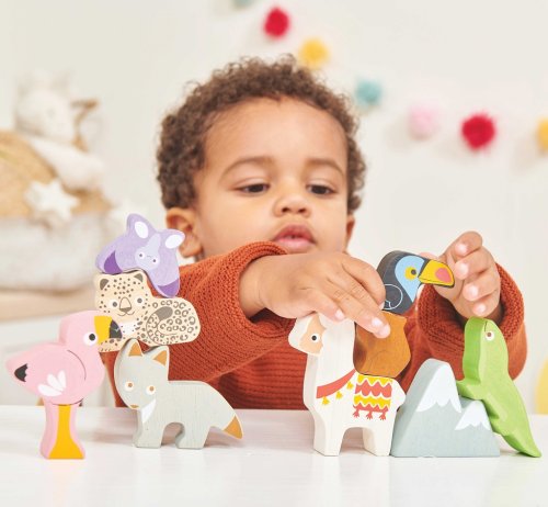 S touto hračkou deti čaká veľké dobrodružstvo! Senzorická skladačka so zvieratami z pohoria Ánd je vyrobená udržateľne, z pevného kaučukového dreva, maľovaná netoxickými farbami, ktoré sa nelúpu. V bavlnenom vrecúšku na šnúrku nájdete osem dielikov zvierat (lama, leňoch, plameniak, jašterica, tukan, motýľ...) a jeden dielik zasneženej hory. Všetky dieliky sú veľkostne tak akurát pre detské ruky. Deti si pri hre precvičia jemnú motoriku a zručnosť. Hračka je bez obsahu plastu a je taktiež vhodná na cesty. Hračky s účelomVšetky hračky firmy Le Toy Van sú vyrobené s cieľom - aby dlho vydržali. Dizajnované s láskou skúsenými remeselníkmi za použitia etických praktík a udržateľných materiálov, ktoré sú láskavejšie k našej planéte. Hlavné vlastnosti: vyrobené eticky z udržateľného drevatestované podľa najprísnejších štandardovmaľované netoxickými farbami na báze vodyinšpiruje k predstavivej hrerozvíja kognitívne zručnostihračka bez obsahu plastubavlnené vrecúško a 9 dielikov Petilou kolekcia: ako učebné prostriedky. Kolekcia je inšpirovaná prírodou okolo nás a je navrhnutá tak, aby rozvíjala zmysly detí pomocou rozdielnych zvukov, textúr, tvarov a hmotností. Deti tak od malička zapoja všetky svoje zmysly. V kolekcii nájdete napríklad skladačky, vkladačky, chodítka, … Značka a certifikát FSC® (Forest Stewardship Council) zaručuje, že drevo, z ktorého bol produkt vyrobený, nebolo vyťažené nelegálne a pochádza z lesov obhospodarovaných šetrným či prírode blízkym spôsobom, v ktorom sú dodržiavané prísne environmentálne a sociálne požiadavky. Značka FSC® na výrobku znamená, že svojim nákupom pomáhate chrániť lesy a podporujete šetrné, zodpovedné či prírode blízke hospodárenie, vďaka ktorému sú naše lesy stabilnejšie, zdravšie, majú prirodzenú druhovú skladbu a lepšie odolávajú negatívnym následkom klimatických zmien.