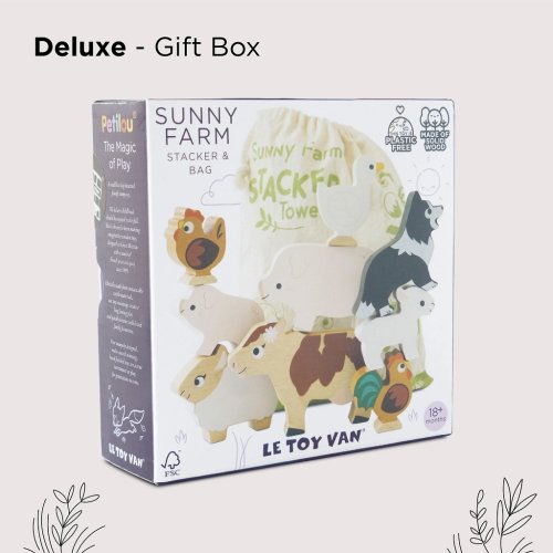 Užite si senzorickú zábavu s touto sadou farmárskych zvieratiek! Sada sa skladá z 9 dielikov - teda psíka, ovečky, kravy, prasiatka so prasiatkom, kačice, sliepočky a kohúta, ktorí majú veľkosť tak akurát pre detské ruky. Figúrky je možné na seba stohovať a vytvárať tak vysoké "veže". Deti môžu pri hraní získať nielen nové poznatky o obyvateľoch žijúcich na farme, ale zároveň si aj precvičiť zručnosť a tak dôležitú jemnú motoriku. Vďaka skladnosti je hračka perfektnou voľbou aj na cestách (dieliky sú uschované v bavlnenom vrecúšku). Skladacia veža Farma je vyrobená z dreva s certifikáciou FSC® (drevo z lesov obhospodarovaných udržateľným spôsobom) a ozdobená farbami na vodnej báze bezpečnými pre deti. Hračky s účelomVšetky hračky firmy Le Toy Van sú vyrobené s cieľom - aby dlho vydržali. Dizajnované s láskou skúsenými remeselníkmi za použitia etických praktík a udržateľných materiálov, ktoré sú láskavejšie k našej planéte. Hlavné vlastnosti: textilné vrecúško, 9 figúrok zvierat zaoblené hrany vyrobené eticky z udržateľného dreva testované podľa najprísnejších štandardov maľované netoxickými farbami na báze vody inšpiruje k predstavivej hre Značka a certifikát FSC® (Forest Stewardship Council) zaručuje, že drevo, z ktorého bol produkt vyrobený, nebolo kým spôsobom, v ktorom sa dodržiavajú prísne environmentálne a sociálne požiadavky. Značka FSC® na výrobku znamená, že svojim nákupom pomáhate chrániť lesy a podporujete šetrné, zodpovedné či prírode blízke hospodárenie, vďaka ktorému sú naše lesy stabilnejšie, zdravšie, majú prirodzenú druhovú skladbu a lepšie odolávajú negatívnym následkom klimatických zmien.