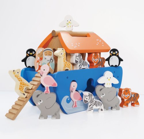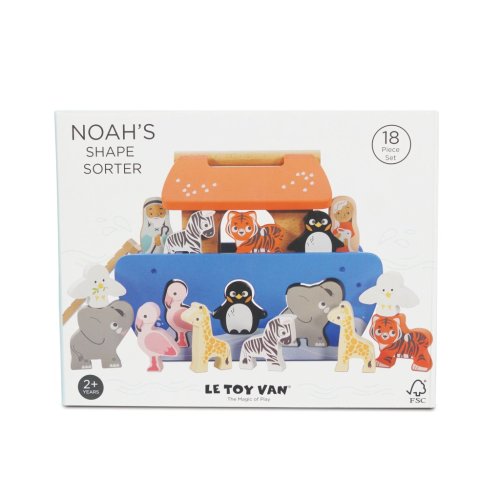 Drevená vkladačka, vďaka ktorej sa deti vďaka hre naučia množstvo nových vecí. Môžu pomenovať zvieratká a farby a vkladaním zvieratiek do zodpovedajúcich otvorov si zábavnou formou precvičia motoriku a koordináciu ruka- oko. Pestrofarebná archa obsahuje 6 párov zvieratiek. Na hornej strane je rukoväť na jednoduché prenášanie a nechýba ani rebrík a sklopné dvere pre jednoduchý nástup a výstup zvieratiek. Hračky s účelomVšetky hračky firmy Le Toy Van sú vyrobené s cieľom - aby dlho vydržali. Dizajnované s láskou skúsenými remeselníkmi za použitia etických praktík a udržateľných materiálov, ktoré sú láskavejšie k našej planéte. Hlavné vlastnosti: vyrobené eticky z dreva certifikáciou FSCbez obsahu plastovtestované podľa najprísnejších štandardovpomaľované netoxickými farbami inšpiruje k predstavivej hrerozvíja kognitívne zručnosti a koordináciu ruka-oko Značka a certifikát FSC® (Forest Stewardship Council) zaručuje, že drevo, z ktorého bol produkt vyrobený, nebolo vy nelegálne a pochádza z lesov obhospodarovaných šetrným či prírode blízkym spôsobom, v ktorom sú dodržiavané prísne environmentálne a sociálne požiadavky. Značka FSC® na výrobku znamená, že svojim nákupom pomáhate chrániť lesy a podporujete šetrné, zodpovedné či prírode blízke hospodárenie, vďaka ktorému sú naše lesy stabilnejšie, zdravšie, majú prirodzenú druhovú skladbu a lepšie odolávajú negatívnym následkom klimatických zmien.