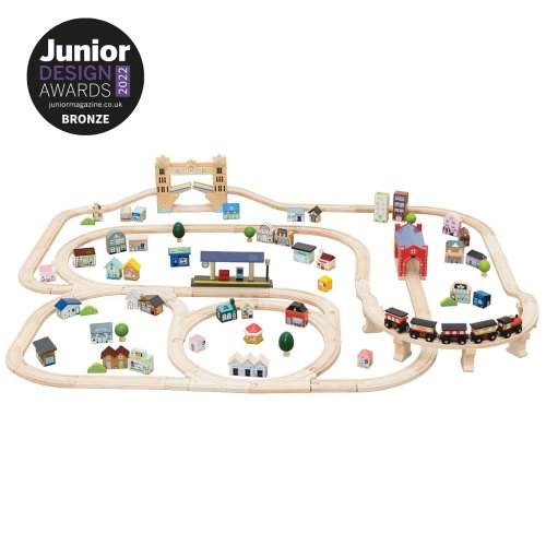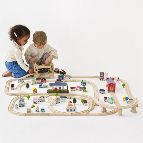 Táto drevená vláčikodráha mieri do Londýna! Nech predstavivosť detí voľne prúdi, vďaka vláčiku spoznajú celé mesto a jeho významné miesta. Hračka sa skladá zo 120 drevených dielikov, má detailné farebné ilustrácie. Zastavte sa v kaderníckom salóne, zverimexe alebo v pizzerii! Vagóny vláčika majú zabudované magnety, dajú sa jednoducho spojiť. Ďalej v balení nájdete koľaje, stanice, mnoho budov a tiež zdvíhací most. Tradičné hračky deti vzdelávajú formou hry. Vyrobené z odolného a udržateľného dreva, maľované netoxickými farbami na báze vody. Ekologická, bezpečná a interaktívna hračka pre všetky deti. Pomôže tiež s rozvojom jemnej motoriky. Rozšírte si zbierku o drevené vláčiky a vláčikodráhy, ktoré sú kompatibilné s výrobkami iných značiek, napr. Brio, pre dlhodobú a unikátnu zábavu. Hlavné vlastnosti: v balení 120 dielikov – 2 vlaky, koľaje, mnoho doplnkovvyrobených eticky z udržateľného drevatestovaných podľa najprísnejších štandardovalizované netoxickými farbami na báze vodypomáha s rozvojom reči a sociálnych zručnostíinšpiruje k predstavivej hre Autá & stavby: Stavebná a motorická kolekcia vyhrala mnoho ocenení. Presnejšie zatiaľ vyše 15 ocenení za predstavivé autá a stavebné hračky. Podporujú detskú fantáziu, sú ideálne k predstavivej hre, rozvíjajú kreativitu a hravo zlepšujú detskú koordináciu ruky.
