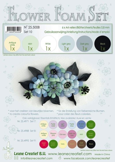 sada špeciálnych penoviek na výrobu kvetov, formát A4 (21x29,7 cm), hrúbka 0,8 mm, 6 farieb. Mäkká penová guma s poréznou štruktúrou, z ktorej môžete ľahko rôzne tvary vystrihovať, vysekávať raznicami alebo vyrezávať – aj na BigShote. Výrezy môžete využiť na ďalšie papierové alebo iné tvorenie - pre detské kreatívne dielne, ale aj na scrapbooking, či cardmaking. Jej veľkou výhodou a špeciálnou vlastnosťou je tvarovateľnosť za tepla - po nahriatí napr. žehličkou (na stupeň 1-2) ju môžete ľahko tvarovať a vytvárať z nej napr. kvietky a listy, ktoré budú vyzerať ako živé... Foamiran môžete aj natierať farbou , a tak prispôsobiť svojim projektom. Na farbenie môžete použiť napr. akrylové, olejové a pastelové farby, ale aj pastelky. Môžete tak prekryť aj prípadné nerovnomernosti základného odtieňa. Foamiran absorbuje vodu len minimálne, čo je jeho ďalšou výhodou. Hotové výrobky môžete využiť aj v exteriéri, pretože odolávajú poveternostným vplyvom.