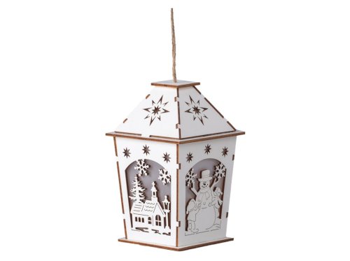 LED dekorácia záves drevo 90x150mm, lucernička, biela