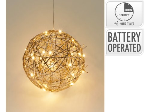 LED guľa kov 200x200mm závesná s časovačom, zlatá