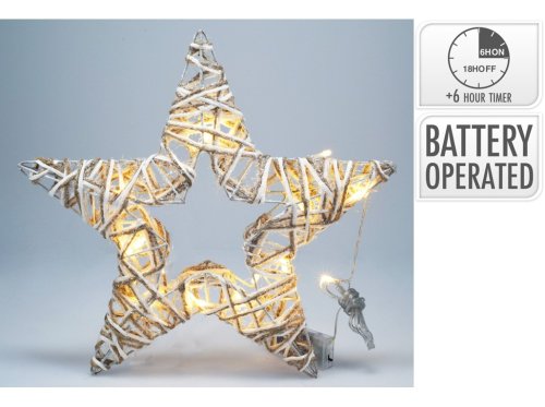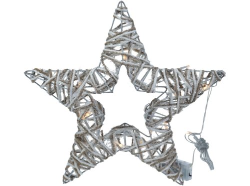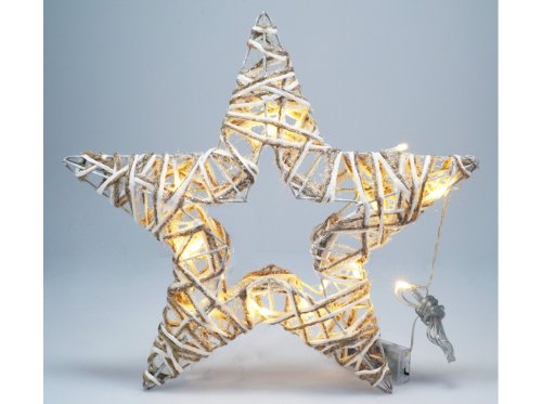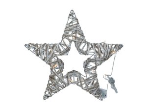 LED hviezda kov, papier s jutovým povrázkom 350x40x350mm závesná s časovačom, šedá