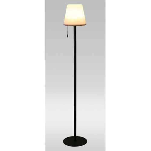Elegantná stojaca lampa vhodná pre vonkajšie aj vnútorné použitie. Kombinuje moderný design s funkčným osvetlením a odolným spracovaním. Lampa má biele PP tienidlo a stabilnú kovovú pätku v matne čiernej farbe. Ponúka štyri režimy svietenia - teplá biela, jemná biela, plynulé striedanie farieb a pevná farba. Jednoduché ovládanie zaisťuje vypínač a ťahací kábel. Vstavaná lítium-ión batéria umožňuje dobíjanie cez USB-C kábel, ktorý je súčasťou balenia.