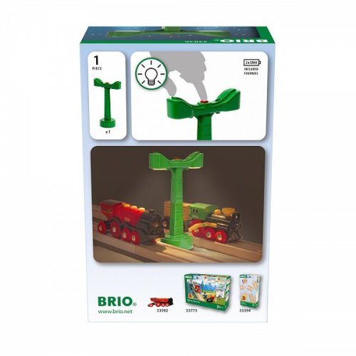 Železničné LED osvetlenie BRIO je skvelým doplnkom každej železničnej trate. Obojstranné LED svetlo je možné zapnúť a vypnúť pomocou červeného tlačidla. Svetlo sa automaticky po niekoľkých minútach vypne. Vyrobené z vysoko kvalitných plastov a jemných kovových detailov. Hračky BRIO sú vysoko kvalitné, vytvorené odborníkmi s dôrazom na bezpečnosť súčiastok. Batérie: 2LR44 (batérie sú súčasťou balenia). Rozmer: 45 x 83 x 131 mm. Rozmer balenia: 9 x 14 x 5 cm. Vek: 3+. Video: https://vimeo.com/488523921