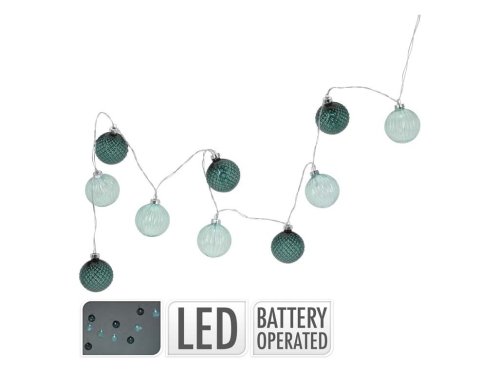 Táto LED reťaz s 10 väčšími sklenenými guľôčkami v modrej a svetlo modrej farbe je ideálna pre zimné či vianočné dekorácie. LED svetlá vytvárajú príjemné a jemné osvetlenie. Reťaz je ľahká a ľahko sa zavesuje alebo kombinuje s ďalšími dekoráciami. Dekoratívne a praktické riešenie pre štýlové a útulné prostredie.