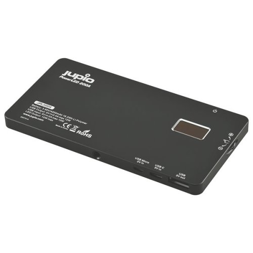 Prenosné svetlo Jupio JPL200A kombinuje funkciu svetla a powerbanky. Svetlo je vybavené 100 LED diódami v 3200 K (teplé svetlo) a 100 LED diódami v 5600 K (denné svetlo) a má možnosť upraviť teplotu farieb v celom tomto rozsahu.