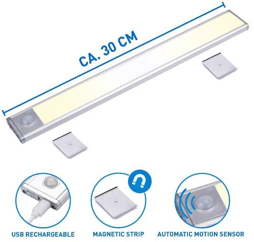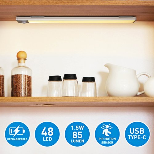 Táto LED lampa Grundig s pohybovým senzorom je praktickým a energeticky účinným riešením osvetlenia. Vďaka integrovanému pohybovému senzoru sa lampa automaticky zapne, keď je potreba. Uchytenie je jednoduché pomocou dvoch magnetických prúžkov, ktoré LED pásik bezpečne držia. Nabíjanie je ľahké a vykonáva sa pomocou priloženého USB-C kábla. Keď je čas nabiť LED svetlo, jednoducho ho vyberte z magnetického držiaka. Vďaka 40 energeticky účinným LED diódam poskytuje táto lampa jas 85 lúmenov pri spotrebe iba 1,5 wattu. Ideálne pre použitie v šatníku alebo ako nočné svetlo s pohybovým senzorom.Špecifikácia žiarovky Grundig LEDUSB dobíjací (USB-C)Pohybový senzor85 lúmenov / 1,5 wattu