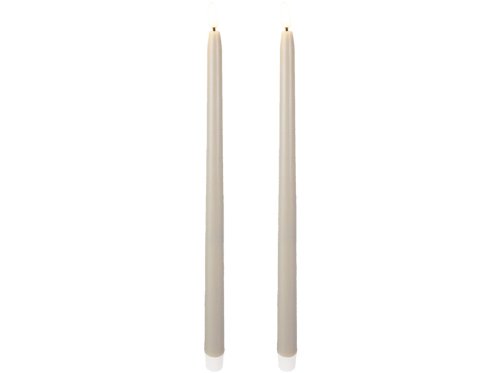 Elegantná sada dvoch kónických LED sviečok v šedej farbe prinesie do vášho domova slávnostnú atmosféru a bezpečné osvetlenie bez rizika otvoreného ohňa. Každá sviečka má výšku 380 mm a je vyrobená s dôrazom na detail pre čo najvernejšie napodobnenie skutočného plameňa. Vďaka integrovanému časovaču a praktickému diaľkovému ovládaču môžete sviečky ľahko zapínať, vypínať a nastavovať dobu svietenia podľa potreby. Ideálna ako dekorácia na sviatočný stôl, do svietnika aj ako bezpečné svetlo do domácnosti s deťmi či domácimi miláčikmi.