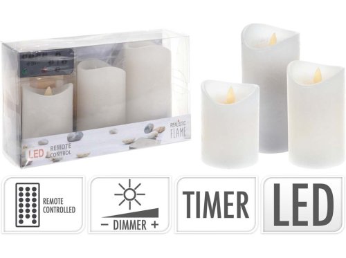 Súprava troch bielych LED sviečok s rozmermi 75 × 100, 75 × 125 a 75 × 150 mm s reálnym plameňom a časovačom ponúka bezpečné a realistické svietenie. LED svetlo imituje skutočný plameň, čím vytvára príjemnú a hrejivú atmosféru. Sviečky je možné umiestniť samostatne alebo spoločne pre elegantný aranžmán na stôl či parapet. Praktický časovač zaisťuje pohodlné používanie. Ideálne pre domáce dekorácie a vianočnú výzdobu.