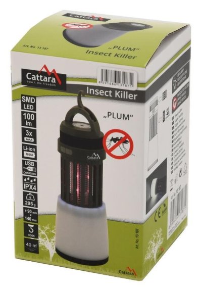 Lampička je vybavená elektronickým lapačom hmyzu . Využíva svetlo s ultrafialovými lúčmi , ktoré láka muchy, mory, mole, komáre a ďalší podobný lietavý hmyz. Akonáhle sa dotkne kovovej siete pod elektrickým prúdom, dôjde k jeho záhube. Vy si užijete krásny večer bez bzučivého otravovania a štiepancov. Lapač funguje bez chemických látok a znečistenia a neucítite dokonca ani žiadny zápach.