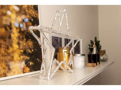 Táto LED hviezda o rozmere 310 × 310 mm je dekoratívny a svietiaci prvok vhodný na zavesenie na okno, stenu alebo strop. LED svetlo s časovačom umožňuje pohodlné ovládanie a vytvára jemné a hrejivé svetlo. Krištáľový vzhľad dodáva hviezde elegantný a slávnostný charakter. Perfektná voľba pre vianočné dekorácie, zimné aranžmány alebo romantické večery.