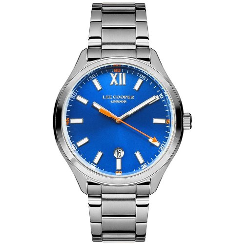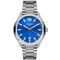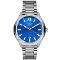 Pánske náramkové hodinky Napájanie z batérie Priemer puzdra 41,0 mm Puzdro v tvare kruhu Kovové puzdro Strieborná farba puzdra Oceľový ťah Strieborná farba ťahu Ručičkový ciferník Modrá farba ciferníka Ciferník s dvanástimi indexmi Materiál skla - minerálne sklo