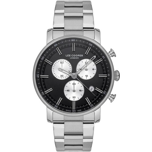 Pánske náramkové hodinky Napájanie z batérie Priemer puzdra 43,0 mm Puzdro v tvare kruhu Kovové puzdro Strieborná farba puzdra Kovový ťah Strieborná farba ťahu Ručičkový ciferník Čierna farba ciferníka Ciferník s dvanástimi indexmi Materiál skla - minerálne sklo Odol