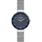 Dámske náramkové hodinky Napájanie z batérie Priemer puzdra 33,0 mm Puzdro v tvare kruhu Kovové puzdro Strieborná farba puzdra Kovový ťah Strieborná farba ťahu Ručičkový ciferník TMAVO MODRÁ farba ciferníka Ciferník s dvanástimi indexmi Materiál skla - minerálne