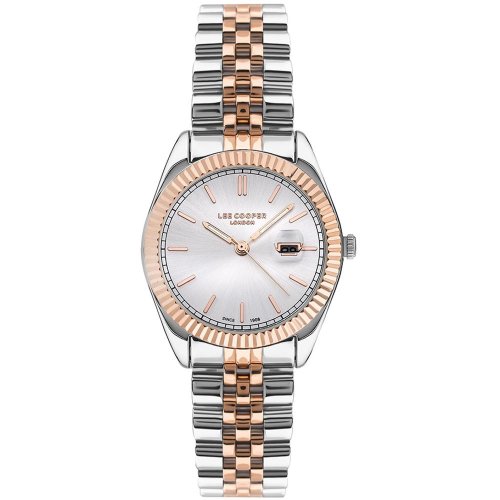 Dámske náramkové hodinky Napájanie z batérie Priemer puzdra 30,0 mm Puzdro v tvare kruhu Kovové puzdro Strieborná farba puzdra Kovový ťah Ružové zlato farba ťahu Ručičkový ciferník Strieborná farba ciferníku Ciferník s dvanástimi indexmi Materiál skla - minerálne sklo