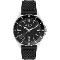 Pánske náramkové hodinky Napájanie z batérie Priemer puzdra 44,0 mm Puzdro v tvare kruhu Kovové puzdro Strieborná farba puzdra ČIERNE farba ťahu Ručičkový ciferník Čierna farba ciferníka Ciferník s dvanástimi indexmi Materiál skla - minerálne sklo Odolné proti vode