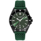 Pánske náramkové hodinky Napájanie z batérie Priemer puzdra 44,0 mm Puzdro v tvare kruhu Kovové puzdro ČIERNA farba puzdra Zelená farba ťahu Ručičkový ciferník Zelená farba ciferníka Ciferník s dvanástimi indexmi Materiál skla - minerálne sklo Odolné proti vode počas sprchovania