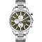 Pánske náramkové hodinky Napájanie z batérie Priemer puzdra 44,0 mm Puzdro v tvare kruhu Kovové puzdro Strieborná farba puzdra Oceľový ťah Strieborná farba ťahu Ručičkový ciferník Zelená farba ciferníku Ciferník s dvanástimi indexmi Materiál skla - minerálne sklo Odolný