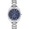 Dámske náramkové hodinky Napájanie z batérie Priemer puzdra 35,0 mm Puzdro v tvare kruhu Kovové puzdro Strieborná farba puzdra Oceľový ťah Strieborná farba ťahu Ručičkový ciferník Modrá farba ciferníku Ciferník s dvanástimi indexmi Materiál skla - minerálne sklo