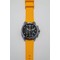 Pánske náramkové hodinky Napájanie z batérie Priemer puzdra 44,0 mm Puzdro v tvare kruhu Kovové puzdro Strieborná farba puzdra Žltá farba ťahu Ručičkový ciferník Čierna farba ciferníka Ciferník s dvanástimi indexmi Materiál skla - minerálne sklo Odolné proti vode