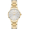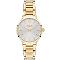 Dámske náramkové hodinky Napájanie z batérie Priemer puzdra 36,0 mm Puzdro v tvare kruhu Kovové puzdro Zlatavá farba puzdra Kovový ťah Zlatavá farba ťahu Ručičkový ciferník Strieborná farba ciferníku Ciferník s dvanástimi indexmi Materiál skla - minerálne sklo