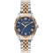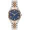 Dámske náramkové hodinky Napájanie z batérie Priemer puzdra 35,0 mm Puzdro v tvare kruhu Kovové puzdro Strieborná farba puzdra Kovový ťah Ružové zlato farba ťahu Ručičkový ciferník Čierna farba ciferníka Ciferník s dvanástimi indexmi Materiál skla - minerálne sklo