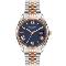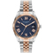 Dámske náramkové hodinky Napájanie z batérie Priemer puzdra 40,0 mm Puzdro v tvare kruhu Kovové puzdro Strieborná farba puzdra Kovový ťah Ružové zlato farba ťahu Ručičkový ciferník Čierna farba ciferníka Ciferník s dvanástimi indexmi Materiál skla - minerálne sklo Odol