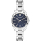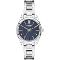 Dámske náramkové hodinky Napájanie z batérie Priemer puzdra 34,0 mm Puzdro v tvare kruhu Kovové puzdro Strieborná farba puzdra Kovový ťah Strieborná farba ťahu Ručičkový ciferník TMAVO MODRÁ farba ciferníka Ciferník s dvanástimi indexmi Materiál skla - minerálne