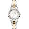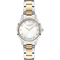 Dámske náramkové hodinky Napájanie z batérie Priemer puzdra 33,0 mm Puzdro v tvare kruhu Kovové puzdro Strieborná farba puzdra Kovový ťah Strieborná/zlatá farba ťahu Ručičkový ciferník PERLEŤOVÁ farba ciferníka Ciferník s dvanástimi indexmi Materiál skla