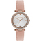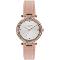 Dámske náramkové hodinky Napájanie z batérie Priemer puzdra 33,0 mm Puzdro v tvare kruhu Kovové puzdro Ružové zlato farba puzdra Kožený ťah Ružová farba ťahu Ručičkový ciferník Strieborná farba ciferníku Ciferník s dvanástimi indexmi Materiál skla - minerálne sklo